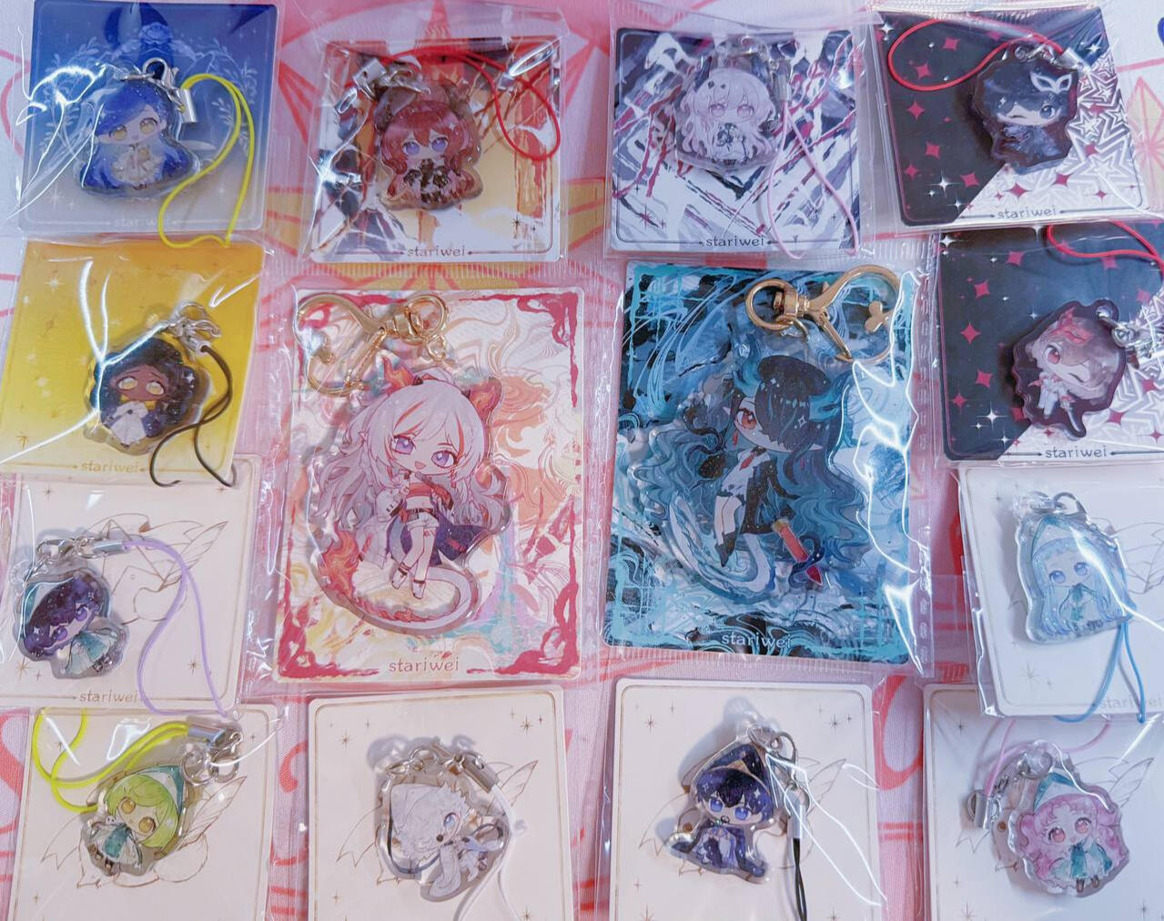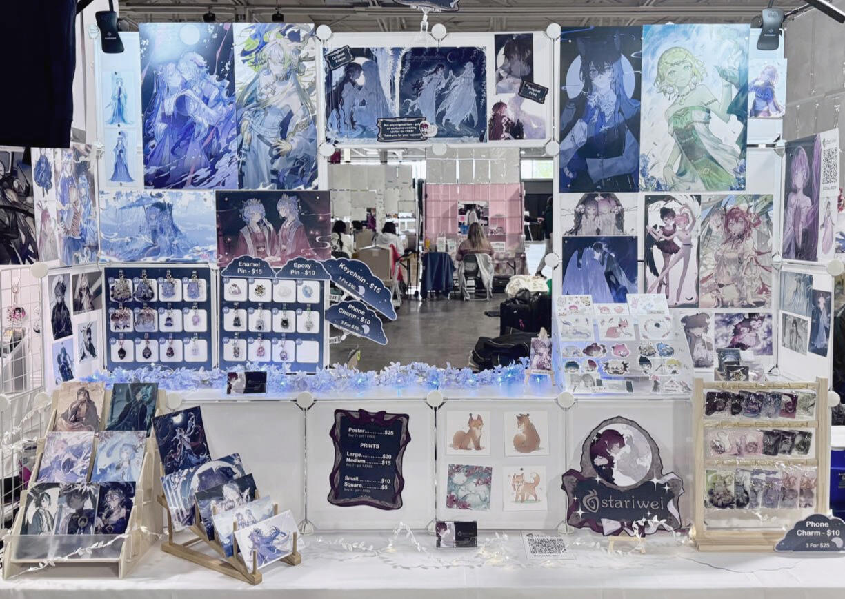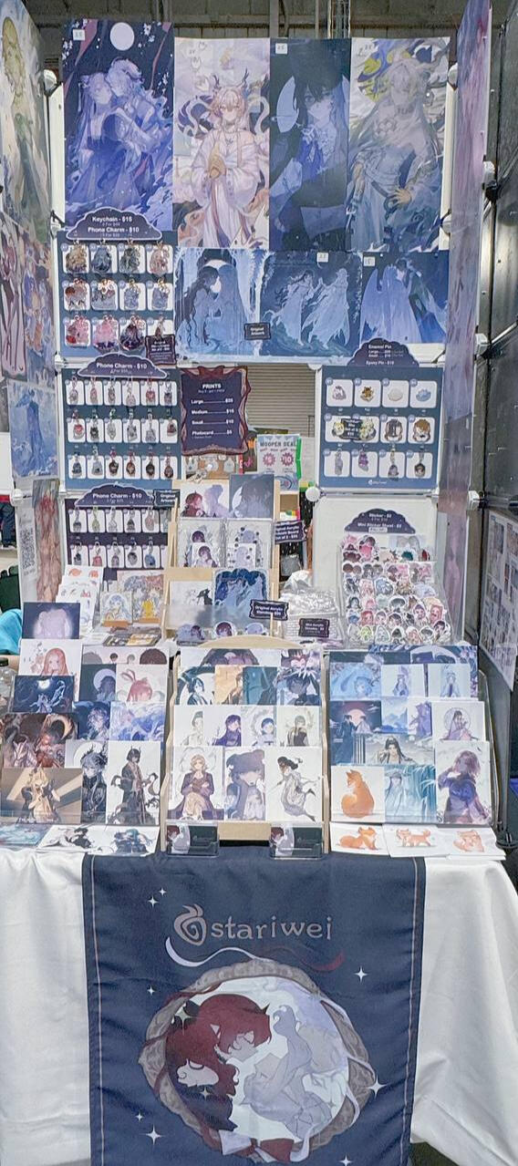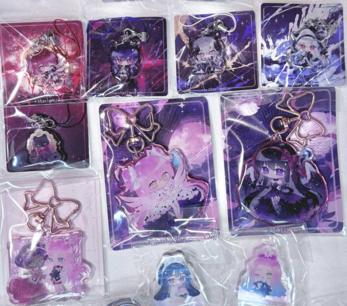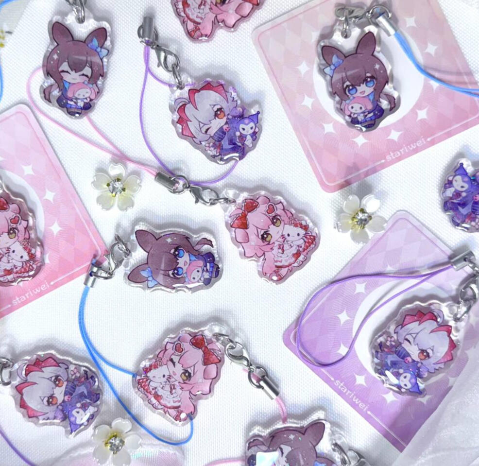 acrylic keychains/phone charms/standee, prints, enamel pins, stickers, button badges of anime/manga/novel/game characters and original characters.Past Event Experience