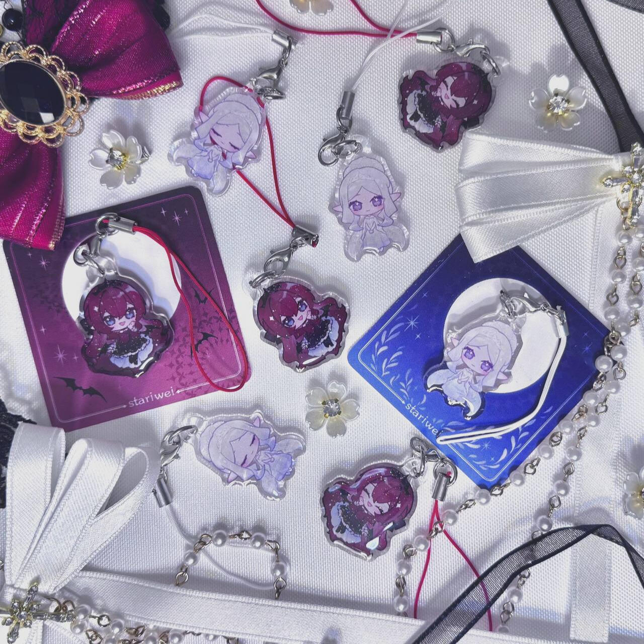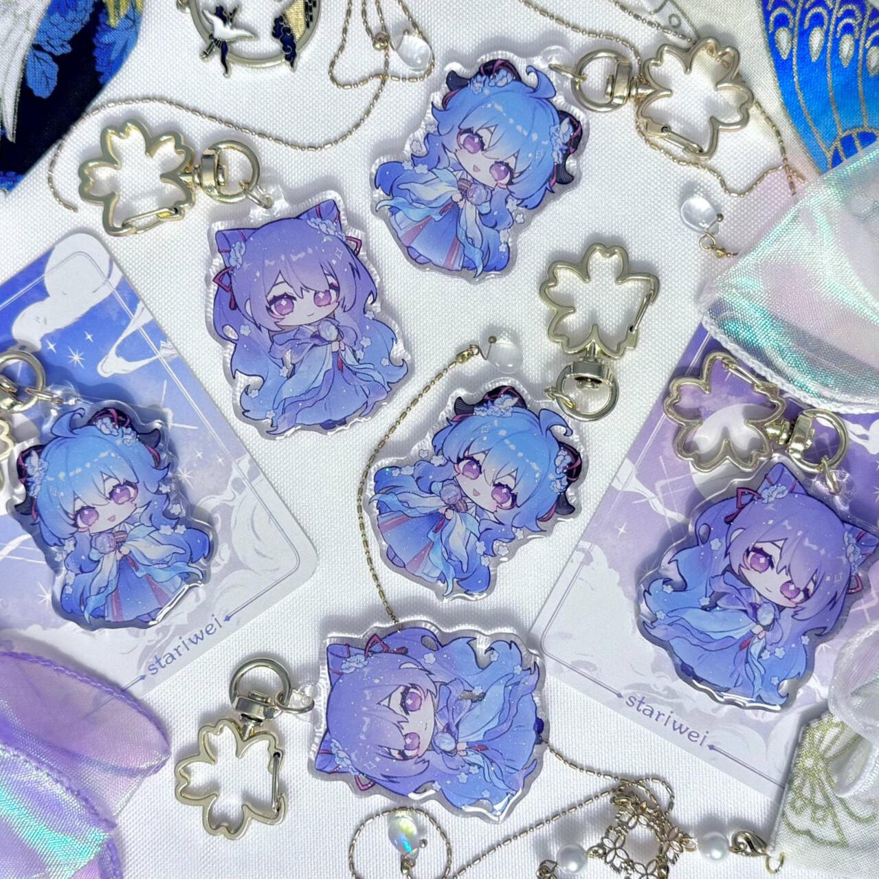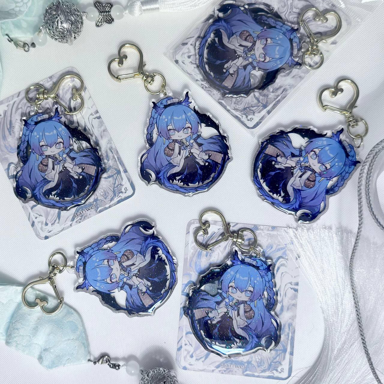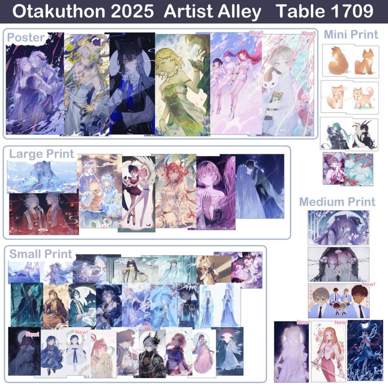 acrylic keychains/phone charms/standee, prints, enamel pins, stickers, button badges of anime/manga/novel/game characters and original characters.Past Event Experience